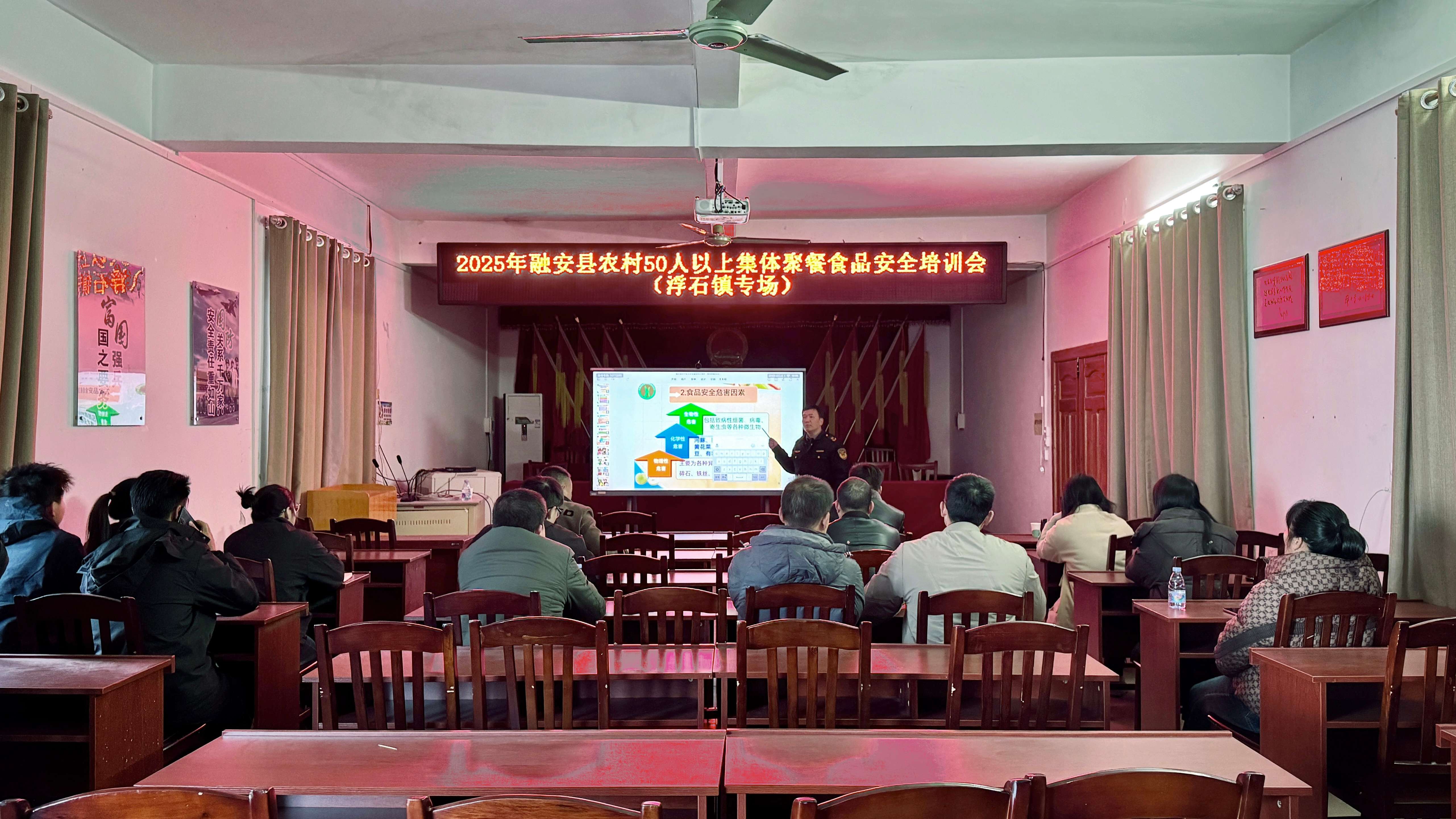 1月17日上午,为进一步保障农村食物平安办理,出力防备农村食物平安风险,浮石镇组织召开2025年农村集体会餐食物平安专题培训会。镇市场监视办理所工做人员对当前浮石镇食物平安形式进行了阐发,对食物平安协管员以及消息员的工做职责、正在农村50人以上会餐指点工做的思以及确保农村50人集体会餐食物平安应抓好的几个环节进行了细致,通过列举食物平安的案例阐发,加强了大师对食物平安的认识。