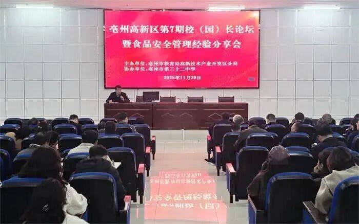 11月29日,由市教育局高新区从办的亳州高新区第七期校(园)长论坛暨食物平安办理经验分享勾当正在亳州市第三十二中学举行。